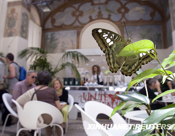 5月13日,在意大利首都羅馬博爾蓋塞博物館,一只蝴蝶落在植物上。新華社/路透