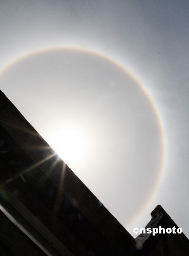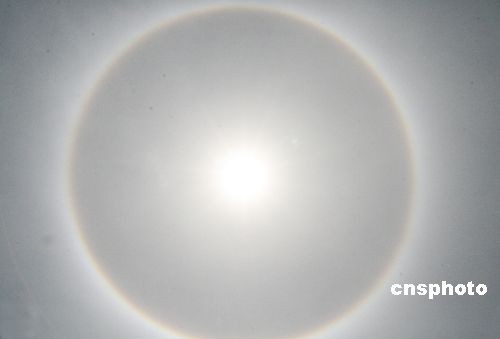 5月17日中午時(shí)分,河南省漯河市上空出現(xiàn)日暈景觀。中新社發(fā) 李慧宇 攝