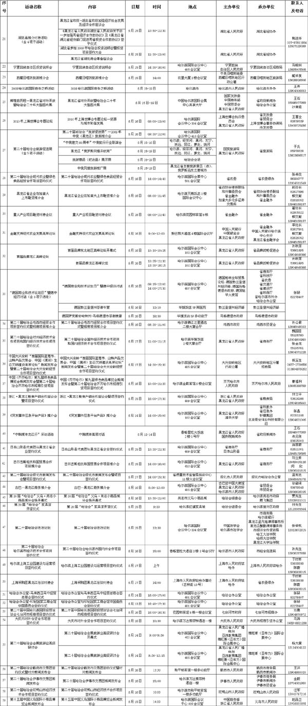 第二十屆中國(guó)哈爾濱國(guó)際經(jīng)濟(jì)貿(mào)易洽談會(huì)主要活動(dòng)日程表