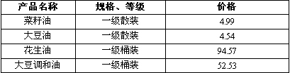 單位:花生油和大豆調(diào)和油:元/5升 其它:元/500克