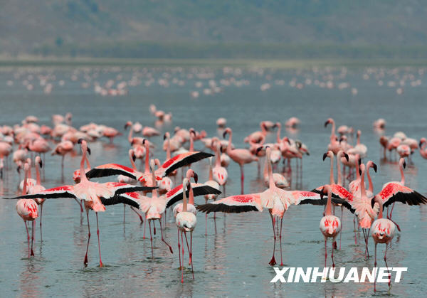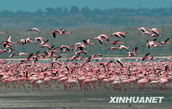 近來受益于環(huán)境保護、水量增長等因素,享有“觀鳥天堂”美譽的肯尼亞納庫魯湖火烈鳥數(shù)量大增。棲息在湖岸淺水區(qū)域超過80萬只粉紅色的火烈鳥,使納庫魯湖重現(xiàn)粉色湖岸奇觀。納庫魯湖是肯尼亞最大的火烈鳥棲息地,數(shù)量曾多達上百萬只,約占世界火烈鳥總數(shù)的三分之一。近些年來由于淡水減少、湖水鹽堿度過高等原因,納庫魯湖火烈鳥數(shù)量急劇下降,2008年期間最少總量一度不足5萬只。