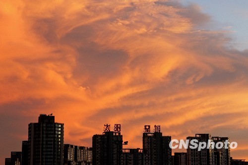 2009年8月19日傍晚,雨后的北京城出現(xiàn)火燒云奇觀。