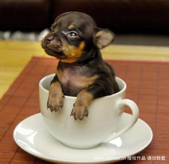 世界最小吉娃娃端坐咖啡杯