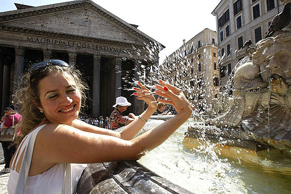 在意大利羅馬,一位美女在用噴泉里的水讓自己涼爽一下。