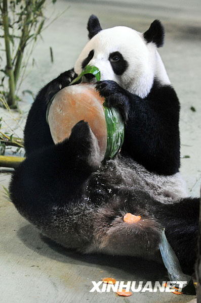 8月30日,“圓圓”享受“冰凍蛋糕”。 |