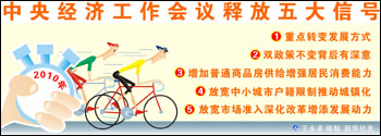 中國的宏觀經(jīng)濟(jì)政策,在保增長取得顯著成效后去向何方,又一次成為海內(nèi)外關(guān)注的焦點(diǎn)。 中央經(jīng)濟(jì)工作會(huì)議7日閉幕。記者在第一時(shí)間約訪了相關(guān)官員和專家,大家普遍認(rèn)為,這次會(huì)議為2010年宏觀政策“定了調(diào)”:保持宏觀政策的連續(xù)性和穩(wěn)定性,轉(zhuǎn)變經(jīng)濟(jì)發(fā)展方式已刻不容緩,通過保障和改善民生促進(jìn)經(jīng)濟(jì)結(jié)構(gòu)優(yōu)化、增強(qiáng)經(jīng)濟(jì)發(fā)展拉動(dòng)力。