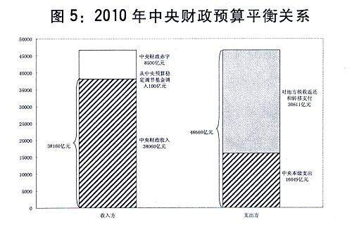 中央財(cái)政收入38060億元,比2009年執(zhí)行數(shù)(下同)增加2163.86億元,增長6%。從中央預(yù)算穩(wěn)定調(diào)節(jié)基金中調(diào)入100億元。合計(jì)收入為38160億元。中央財(cái)政支出46660億元,增加2758.86億元,增長6.3%。其中,中央本級支出16049億元,增加769.16億元,增長5%;中央對地方稅收返還和轉(zhuǎn)移支付30611億元,增加1989.7億元,增長7%。中央財(cái)政收支相抵,赤字8500億元,增加1000億元。相應(yīng)增加國債發(fā)行規(guī)模,中央財(cái)政國債余額限額71208.35億元。