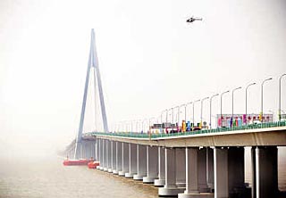 編者按 10年論證,5年施工,融資140億元,創(chuàng)新250多項技術(shù),杭州灣跨海大橋見證了改革開放的偉大歷程。跨海大通道的全線貫通,將加速長三角地區(qū)物流、人流、信息流、資金流的流動,使長三角的南翼、北翼實現(xiàn)無縫對接,區(qū)域經(jīng)濟(jì)一體化之路大大提速,產(chǎn)業(yè)發(fā)生集聚效應(yīng),從而加快以上海為龍頭的世界第六大城市群的崛起。