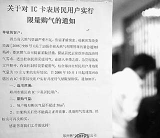| 鄭州市一燃?xì)釯C卡充值點(diǎn)貼出限購(gòu)告示。丁潔