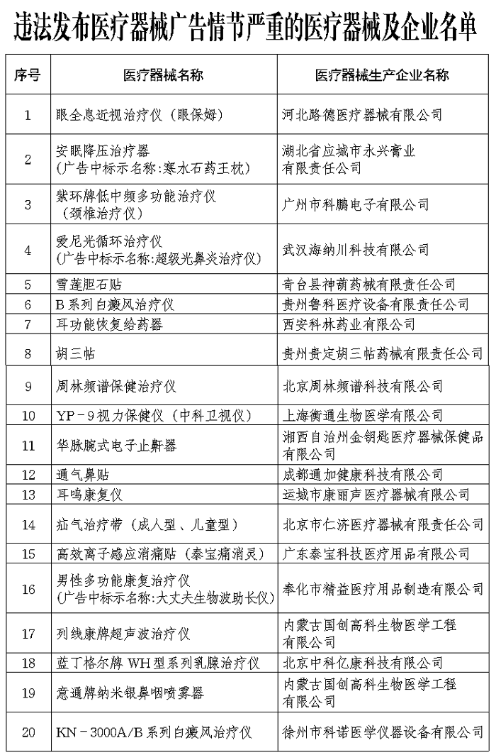 此外,記者了解到,北京周林頻譜科技有限公司生產(chǎn)的“周林頻譜保健治療儀”、上海衡通生物醫(yī)學(xué)有限公司生產(chǎn)的“中科衛(wèi)視儀”、湘西自治州金鑰匙醫(yī)療器械保健品有限公司生產(chǎn)的“華脈腕式電子止鼾器”、北京中科億康科技有限公司生產(chǎn)的“乳腺治療儀”、內(nèi)蒙古國創(chuàng)高科生物醫(yī)學(xué)工程有限公司生產(chǎn)的“意通牌納米銀鼻咽噴霧器”等產(chǎn)品,均存在著未經(jīng)食品藥品監(jiān)督管理部門審批發(fā)布醫(yī)療器械廣告、擅自篡改經(jīng)食品藥品監(jiān)督管理部門審查批準(zhǔn)的內(nèi)容發(fā)布廣告的情形。這嚴(yán)重違反了《廣告法》、《醫(yī)療器械廣告審查標(biāo)準(zhǔn)》等規(guī)定。