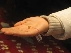 韓瑛說,據(jù)他觀察,這輪消費熱潮中,很多消費者都屬于低端人群,購買“轉運珠”是其第一次消費黃金,柜臺前神情興奮但對K金和足金等常識一無所知的人占了大多數(shù)。從出貨情況看,最好賣的都是1克以下的“轉運珠”,每個價格在100元到200元;2克以上的“轉運珠”也有,但是走貨就慢多了。這也從另一個角度印證了“轉運珠”的消費群體購買力水平并不是很高。