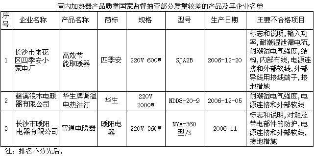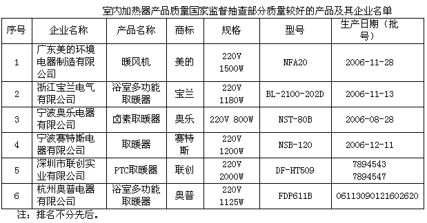 為了維護(hù)廣大消費(fèi)者的合法權(quán)益,進(jìn)一步規(guī)范室內(nèi)加熱器行業(yè)的健康發(fā)展,國(guó)家質(zhì)檢總局組織對(duì)室內(nèi)加熱器產(chǎn)品質(zhì)量進(jìn)行了國(guó)家監(jiān)督抽查,共抽查了浙江、廣東、湖南、江蘇、安徽、上海、山東等7個(gè)省市40家企業(yè)生產(chǎn)的40種產(chǎn)品,產(chǎn)品抽樣合格率為85%。
