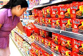 | 顧客在超市內(nèi)選購方便面。本報記者 陳飛