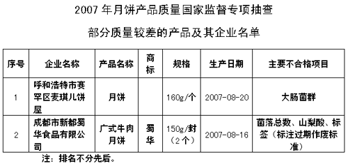 中秋將近,國家質檢總局適時對全國月餅行業(yè)產(chǎn)品質量進行了國家質量監(jiān)督抽查,并公布了不合格產(chǎn)品的生產(chǎn)企業(yè)。 為維護廣大消費者的合法權益,讓消費者吃上放心的月餅,從1999年至今,質檢總局已連續(xù)九年組織對月餅產(chǎn)品質量進行了產(chǎn)品質量國家監(jiān)督專項抽查。跟蹤抽查結果表明:目前我國月餅產(chǎn)品總體質量狀況較好,產(chǎn)品質量穩(wěn)步提高,特別是占據(jù)月餅主流市場的均為大中型企業(yè)和名牌企業(yè),其產(chǎn)品質量很好。 與往年相比,今年月餅產(chǎn)品質量國家監(jiān)督專項抽查主要特點有,抽查覆蓋面廣。今年抽查涉及了北京、天津、重慶、河北、山西、內(nèi)蒙古、遼寧、吉林、新疆等29個省、自治區(qū)、直轄市378家月餅生產(chǎn)企業(yè)的425種產(chǎn)品,實物質量合格率為99.5%。此次抽查是歷年以來抽查覆蓋面最廣的一次。二是大中型企業(yè)的產(chǎn)品質量持續(xù)穩(wěn)定。三是過度包裝問題得到有效控制。 抽查中發(fā)現(xiàn)的主要質量問題有,產(chǎn)品超范圍、超限量使用食品添加劑。防腐劑主要是抑制食品中微生物的生長,起到延長食品保質期的作用。本次抽查中有個別產(chǎn)品檢出含有苯甲酸,山梨酸含量超標。