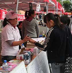 | 黑龍江大學9月10日新生報到注冊,各大通訊商、手機經(jīng)銷商忙在校園擺攤促銷。新華社記者 鄭啟航