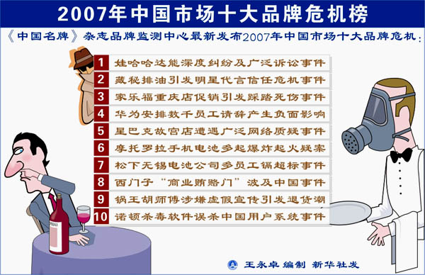2007年中國市場十大品牌危機(jī)榜[圖表]