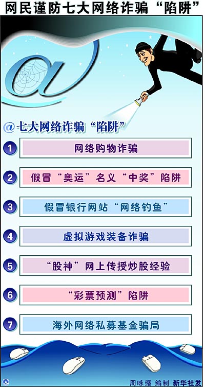 網(wǎng)民謹(jǐn)防七大網(wǎng)絡(luò)詐騙“陷阱”[圖表]