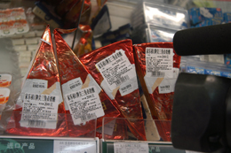 浙江省工商部門4月16日在例行食品質(zhì)量抽檢中發(fā)現(xiàn)杭州、寧波的家樂福超市銷售過期食品。圖為被工商人員當(dāng)場(chǎng)查扣的過期家樂福牌奶酪。保質(zhì)期顯示為2008年4月14日。