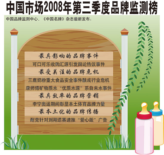 中國(guó)市場(chǎng)2008年第三季度品牌監(jiān)測(cè)榜
