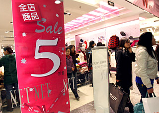 元旦期間,西安各大商場紛紛推出打折措施,吸引了大批市民前來購物。 記者3日在西安街頭看到,雖然已近假期末尾,但街上仍有許多出來逛街和購物的人。在西安最繁華的東大街和西大街,各大商場紛紛推出了打折促銷措施,力圖吸引市民前來購物。在西安市蓮湖路上的一家蘇寧電器賣場,記者看到每個樓層都有大批的顧客在選購電器,特別是電視機和數(shù)碼產(chǎn)品的銷售區(qū)人數(shù)最多。一家進口品牌的電視機售貨員告訴記者,他們的品牌趁著節(jié)日推出了10%的優(yōu)惠措施,元旦3天出貨量比平常多出了200%。 |