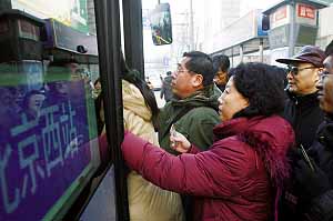攝 | “原先我就坐800,空調(diào)車票價貴,坐的人少,上車都有座,F(xiàn)在可不敢坐了,根本擠不上去,反倒是原來擠得水泄不通的44路相對寬松許多!痹诙h(huán)路東直門站,一位大學(xué)生的話音剛落,一輛800路進(jìn)站了。剎那間,排在44路候車線后整齊有序的乘客隊伍炸了窩,幾十人蜂擁著向800路車奔去,爭先恐后往上擠。協(xié)管員見怪不怪道:“每次都這樣,大家覺得空調(diào)和普通車一個價,當(dāng)然挑好的坐! “空調(diào)車全程票價下調(diào)了6.4元,如今和非空調(diào)車一個價。”834路的一位售票員說,“我們現(xiàn)在天天都處于滿載狀態(tài),高峰時段更是超負(fù)荷。沒調(diào)價前,高峰期勉強(qiáng)滿員,平時也就50%左右!北本┦薪煌ㄎ瘮(shù)據(jù)顯示:優(yōu)惠后公交車的平均滿載率達(dá)到了75%,尤其是原來月票無效的7、8字頭的公交線路,其滿載率提高了48%。原來月票有效的公交線路的滿載率,則平均下降了10%,有的線路則下降了20%。 “原來空調(diào)車的客流量不到非空調(diào)車的1/3,現(xiàn)在基本持平了。”一位調(diào)度員的結(jié)論很有說服力。但是由于空調(diào)車的密封性強(qiáng),過高的客流量已使其舒適度大大降低,記者坐上一輛滿載的800路車,沒過多久便感覺呼吸困難,四周乘客也都眉頭緊鎖、煩躁不安?照{(diào)公交車的過載,讓乘客無論站著坐著都不舒服,結(jié)實的人墻,讓人根本透不過氣來。