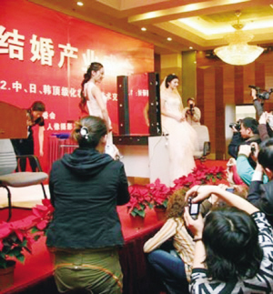 | 已在中國(guó)有30多家合作婚禮會(huì)場(chǎng)的日本華德培婚禮有限公司,是世界上惟一一家上市的婚慶公司。從今年年初開始,該公司將把其在中國(guó)的婚禮會(huì)場(chǎng)增加到50家左右,同時(shí),該公司旗下已有50多年歷史的,以定做手工婚紗為主的高級(jí)品牌——“薇蒔”近日也在上海開出其全球第88家分店,完善了該公司在中國(guó)主要市場(chǎng)上的婚禮系統(tǒng)。 無(wú)獨(dú)有偶,日本的另一家婚慶策劃大品牌“摩可”也在去年占領(lǐng)了上;閼c市場(chǎng)10%的份額。據(jù)公司相關(guān)人士介紹,該公司在今后的5年中將繼續(xù)加大對(duì)中國(guó)市場(chǎng)的投入,在2010年實(shí)現(xiàn)在華銷售額占公司總銷售額兩成的目標(biāo)。 此外,據(jù)業(yè)內(nèi)消息稱,日本BestBridal和WorldBridal兩家著名婚禮服務(wù)公司也對(duì)中國(guó)婚慶服務(wù)市場(chǎng)躍躍欲試。