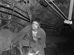 照片:帶著疲勞下班的煤礦工人乘“猴子車”上井。曹渝等10名大學生供圖