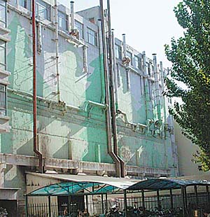 記者隨后來到麗都會(huì)館后面的中財(cái)雅典小區(qū)內(nèi)。只見一輛大車停在會(huì)館的鍋爐房門前,兩名裝卸工正在往車上裝爐渣。鍋爐房內(nèi)的鍋爐正在運(yùn)轉(zhuǎn),沿墻而上的3根大煙囪直插夜空。