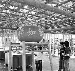 都市菜園籌建組負(fù)責(zé)人陳林兵指著棚下長(zhǎng)出的一對(duì)對(duì)黃白兩種顏色的南瓜,風(fēng)趣地介紹說:“我們管它們叫‘金童’和‘玉女’,而那個(gè),像不像香爐?”可不是,不經(jīng)指點(diǎn),這里的不少奇瓜異蔬,真要從眼皮底下溜過!斑@些形態(tài)奇異的蔬果,味道怎么樣?”我們禁不住好奇地問道!斑@間溫室里,種有200多種蔬果,這些品種及栽培技術(shù),是從國(guó)外引進(jìn)的,比較符合這里土地沙質(zhì)、鹽堿特性,種植出來的蔬菜綠色、環(huán)保、高產(chǎn),味道也很不錯(cuò)!标惲直卮鹫f。