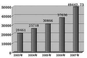 2007年,全國(guó)稅收收入突破4.9萬億元,全年財(cái)政收入將超過5.1萬億元,均比上年增長(zhǎng)三成多,明顯高于GDP增幅——