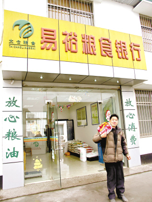 易裕糧食銀行離老陳的家很近。看到老陳前來(lái),工作人員熱情地向他打著招呼。老陳拿出存折,表示要換一袋10公斤的當(dāng)?shù)貥?biāo)準(zhǔn)大米。工作人員接過(guò)存折,用筆在存折上記錄下這筆交易,在扣除10公斤大米后,迅速地計(jì)算出老陳結(jié)余的存糧。 顯然,老陳對(duì)這樣的存取交易規(guī)則已經(jīng)了然在胸。糧食銀行里還擺放著其他品牌的大米。老陳知道,他也可以換取這些品牌的大米,只不過(guò)要貼上一些差價(jià),他還可以在這里換取食用油以及面粉。 類似的存取交易,每天都會(huì)在這間位于江蘇省太倉(cāng)市城廂鎮(zhèn)南郊的糧食銀行發(fā)生。 自稱“老糧食人”的周元?jiǎng)资沁@家糧食銀行的“行長(zhǎng)”,太倉(cāng)市易裕糧油購(gòu)銷有限公司的負(fù)責(zé)人。他對(duì)記者強(qiáng)調(diào),易裕糧食銀行不是一間真正的銀行,它只是其公司的服務(wù)窗口。同樣的說(shuō)法還來(lái)自于太倉(cāng)市糧食局辦公室主任徐仲良。徐仲良告訴記者,糧食銀行并非一家法人實(shí)體,它只是糧油購(gòu)銷企業(yè)下屬的服務(wù)窗口。 不過(guò),銀行的一些概念在這里得到引用,比如“儲(chǔ)戶”、“存折”、“行長(zhǎng)”等等。周元?jiǎng)渍f(shuō),他之所以選用“糧食銀行”這個(gè)名字,是因?yàn)槁?tīng)起來(lái)通俗易懂,也希望借用銀行一些簡(jiǎn)單的運(yùn)作流程,用銀行的理念管理糧食,吸引農(nóng)戶把口糧存入糧食銀行。