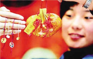 黃金賀歲產(chǎn)品爭(zhēng)相上市 金瓜子、十二生肖彩色金銀條、生肖金錢、節(jié)慶賀歲荷包……春節(jié)將至,北京市場(chǎng)各種黃金賀歲禮品爭(zhēng)相面市,受到消費(fèi)者追捧。1月24日,菜百柜臺(tái)上的“節(jié)慶賀歲荷包”一個(gè)小時(shí)就賣出30余個(gè)。吳名