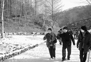 在這其中,歷經(jīng)40余載從枯山變成茂密森林的韓國忠州人登山“SK人才之林”給學(xué)生們留下了極其深刻的印象。 40年前,韓國的經(jīng)濟開始起飛之時,人登山的植物受到了大面積的破壞,土壤直接暴露在陽光和暴雨之下,水土流失十分嚴(yán)重。在一片質(zhì)疑和嘲笑聲中,韓國SK集團會長崔鐘賢帶領(lǐng)著員工,在光禿禿的忠州人登山上種下一棵棵小樹苗,留下了堅定的腳印和希望。 40年后,故人已去,曾經(jīng)荒蕪的人登山變成了茂密的森林!癝K集團通過這樣的活動既培養(yǎng)了員工關(guān)愛自然、保護環(huán)境的珍貴品質(zhì),也通過每年林業(yè)帶來的收益,包括果實、木材的收益設(shè)立獎學(xué)金,資助優(yōu)秀學(xué)生讀書,為國家培養(yǎng)了人才!盨K集團相關(guān)負(fù)責(zé)人講述的有關(guān)“SK人才之林”的感人故事吸引了大家。 2月2日,我們一行從首爾出發(fā),1個多小時后來到韓國忠州人登山的“SK人才之林”。人登山位于韓國北部的天登山和南部的地登山之間。這里剛剛下過雪,環(huán)望四周,一片雪白;一排排的參天大樹,樹干沖向天空,在陽光的照耀下舒展著枝杈。迎面吹來陣陣細(xì)風(fēng)送來清新的空氣!安豢上胂筮@滿山的樹林都是人工植栽的!”學(xué)生們一陣驚嘆。