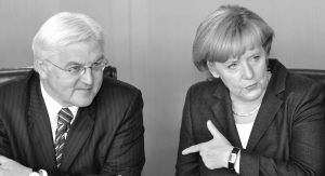 | 歐洲各主要經(jīng)濟(jì)體昨日紛紛出臺(tái)大力度救助措施。圖為德國總理默克爾和外長施泰因邁爾(左)發(fā)表講話,德國政府最新公布了總金額高達(dá)4700億歐元的金融救援計(jì)劃。IC圖片 | 在歐元區(qū)15國領(lǐng)導(dǎo)人上周日通過金融救助行動(dòng)計(jì)劃后,歐洲各主要經(jīng)濟(jì)體昨日紛紛出臺(tái)相應(yīng)的大力度救助措施。與此同時(shí),美聯(lián)儲(chǔ)13日聯(lián)合歐洲和日本等五大央行再次加大“輸血”力度,向市場推行“無限額”注資計(jì)劃。業(yè)內(nèi)人士認(rèn)為,金融救市措施將維護(hù)金融市場穩(wěn)定,但大宗商品市場短時(shí)間內(nèi)難以扭轉(zhuǎn)下滑趨勢。
