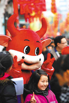 | 在杭州吳山腳下的年俗廟會(huì)上,游客和市民盡情感受牛年的年味與快樂。吳國方