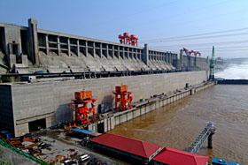 | 圖為三峽右岸電站廠房外景。7月10日,中國首臺全國產(chǎn)化70萬千瓦水輪發(fā)電機(jī)組——三峽電站26號機(jī)組正式并網(wǎng)發(fā)電。新華社記者