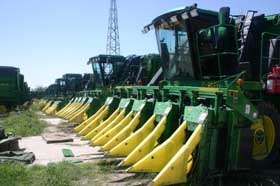 | 圖為等待召回的采棉機(jī),這些出現(xiàn)質(zhì)量隱患的龐然大物,每一臺(tái)的價(jià)值都超過(guò)了150萬(wàn)元人民幣。 |