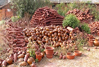| 在云南省建水縣工藝美術(shù)陶廠的廠區(qū)里,一些制作好的紫陶器具隨意堆放著。本報(bào)記者 李倩