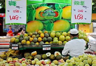 | 8月12日,銀川市一家超市的工作人員在整理水果。國家統(tǒng)計(jì)局當(dāng)日發(fā)布的數(shù)字顯示,7月份我國居民消費(fèi)價(jià)格總水平同比上漲6.3%。新華社記者