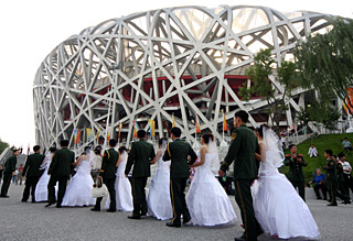 | 奧運(yùn)后的國家體育場(chǎng)“鳥巢”成為許多大型活動(dòng)的首選場(chǎng)地。圖為日前在這里舉辦的一場(chǎng)集體婚禮。新華社發(fā)(吳長(zhǎng)青