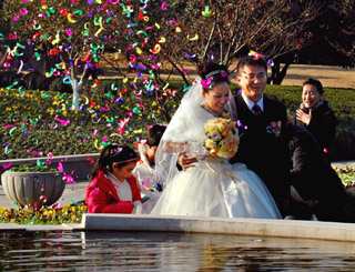 | 西子湖畔的婚慶儀式,成為杭州冬日里一道浪漫的風(fēng)景。新華社記者 譚進