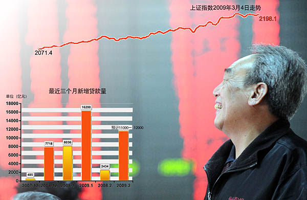 2月份的最后一周,國(guó)內(nèi)銀行開(kāi)始貸款沖刺,政府主導(dǎo)的項(xiàng)目貸款成了追捧的熱點(diǎn)。記者了解的數(shù)據(jù)顯示,2月份,工行新增人民幣貸款不到2000億元,中行新增人民幣貸款1900億元,建行新增人民幣貸款1600億元,四家國(guó)有銀行新增人民幣貸款超過(guò)6000億元,國(guó)內(nèi)金融機(jī)構(gòu)全部新增人民幣貸款在1.1至1.2萬(wàn)億元。