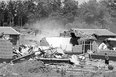 張振夢(mèng)寐以求的陽(yáng)光房是住不上了。昨天,記者見(jiàn)到張振時(shí),他始終嘀咕著“全倒了,這回真沒(méi)戲了……”從他茫然的眼神看得出來(lái),他已經(jīng)完全沒(méi)了主意!吧洗螐(qiáng)拆時(shí)我也知道,本想退出來(lái),但開(kāi)發(fā)商說(shuō)上面有關(guān)系,只要把大棚配管房面積改小就沒(méi)事!睆堈裾f(shuō),由于當(dāng)時(shí)政府執(zhí)行強(qiáng)拆的力度并不大,他便聽(tīng)信了開(kāi)發(fā)商一個(gè)名叫劉文的銷售經(jīng)理的話。果然,在暫停了兩個(gè)月后,“禾惠莊園”改頭換面,以“東華養(yǎng)生莊園”的名義繼續(xù)施工,并且承諾今年6月底前交房。沒(méi)想到,就在交房前一個(gè)月,通州區(qū)國(guó)土、建委、城管等部門(mén)突然聯(lián)合執(zhí)法,將莊園內(nèi)180棟即將竣工的生態(tài)房全部推倒。