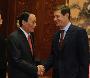 10月12日,中國國務院副總理、中俄總理定期會晤委員會中方主席王岐山在北京人民大會堂同俄羅斯副總理、中俄總理定期會晤委員會俄方主席茹科夫共同主持中俄總理定期會晤委員會第十三次會議。新華社記者