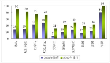 綜合排名位次下降急劇前10個(gè)國(guó)家 |