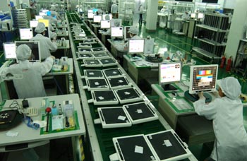 2009年我國(guó)內(nèi)地宣布投建的7.5代以上液晶面板生產(chǎn)線已多達(dá)8條,預(yù)計(jì)總投資額將超過2000億元人民幣。兩到三年后液晶面板市場(chǎng)或?qū)⒚媾R產(chǎn)能過剩的考驗(yàn)。(資料照片) |