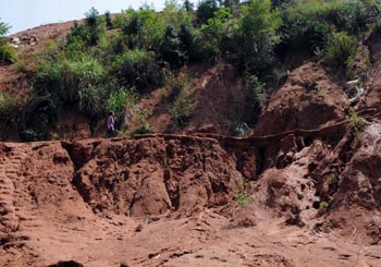 平南縣六陳鎮(zhèn)六合村,一非法稀土礦開采點造成嚴(yán)重的水土流失。 |