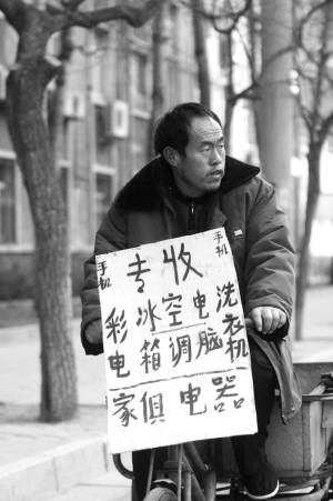 2月3日,常駐北京月壇北街回收廢舊家電的小販李旺,又迎來了生意興隆的一天。