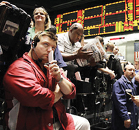 大宗行情的波動令交易員們神情各異。 |