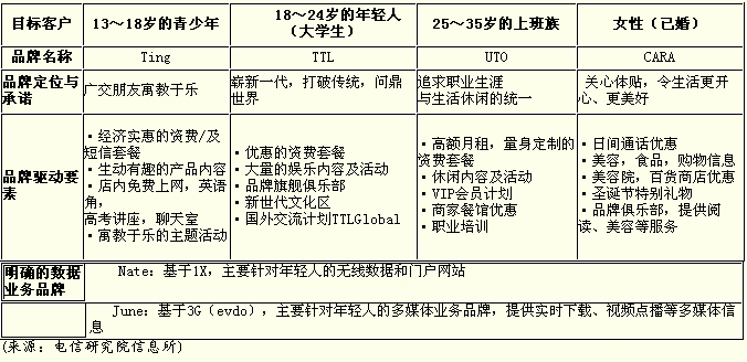 1x業(yè)務(wù)。KTF和SKT分別在2000年和2002年推出了EV-DO網(wǎng)絡(luò)服務(wù),目前其覆蓋范圍最大達(dá)81個(gè)城市,可支持的數(shù)據(jù)傳輸速率達(dá)到2.4Mbps,可提供GPS、移動多媒體、虛擬通信、移動會議等多種服務(wù)。LGT目前還未開通EV-DO服務(wù)。 ★市場增長情況 目前,韓國移動電話用戶數(shù)達(dá)3700萬,移動電話普及率為77%,移動市場形成了由SKT、KTF和LGT三足鼎立的局面,其中SKT、KTF和LGT的用戶數(shù)分別為1900萬、1200萬和600萬。據(jù)ARC集團(tuán)分析,2004年由于EV-DO業(yè)務(wù)在韓國推廣良好,韓國3G移動電話的銷量比2003年增長了117%。2005年EV-DO在3G市場的占有率達(dá)到34%,到2009年有望達(dá)到91%。 2004年1月以來,韓國三大移動運(yùn)營商先后開放了號碼可攜帶服務(wù),KTF與LGT等市場挑戰(zhàn)者利用這一政策不同程度地提升了自身的3G市場份額。目前,韓國SKT和KTF的EV-DO用戶市場份額分別為65%和35%。 韓國政府出于減輕高通專利費(fèi)壓力及擴(kuò)大國際市場空間等戰(zhàn)略考慮,于2000年向SKT和KTF發(fā)放了WCDMA牌照。2003年12月,SKT與KTF分別開通了覆蓋首爾地區(qū)的WCDMA網(wǎng)絡(luò),韓國從而成為全球唯一的運(yùn)營商同時(shí)運(yùn)營兩種3G制式的國家。雖然韓國WCDMA服務(wù)商用化至今已有兩年多,但受多種因素的影響,用戶增長緩慢。到2005年11月底,僅發(fā)展用戶1.2萬戶。 ★業(yè)務(wù)發(fā)展情況 在業(yè)務(wù)發(fā)展方面,SK電訊的經(jīng)驗(yàn)值得一提。SKT把用戶按年齡段進(jìn)行了細(xì)化,在全面研究每個(gè)年齡段用戶需求特點(diǎn)的基礎(chǔ)上,提供具有針對性的品牌服務(wù),以鞏固并擴(kuò)大用戶規(guī)模。目前,SKT主推Ting、TTL、UTO和CARA這4種客戶品牌,見表2。 作為韓國第二大移動運(yùn)營商,KTF基于1X和EV-DO網(wǎng)絡(luò),將其數(shù)據(jù)與增值業(yè)務(wù)劃分為Magic@、Fimm兩大綜合門戶品牌及Multipack、K-merce、VIZ、Telematics等多個(gè)子品牌。Magic@是KTF于2001年1月推出的最基本的數(shù)據(jù)與增值業(yè)務(wù)門戶品牌,所涵蓋的主要是以短信(定制、推送類)、MMS、鈴聲下載等為主的2.5G業(yè)務(wù)。無論是2G的CD-MAIS95用戶,還是cdma